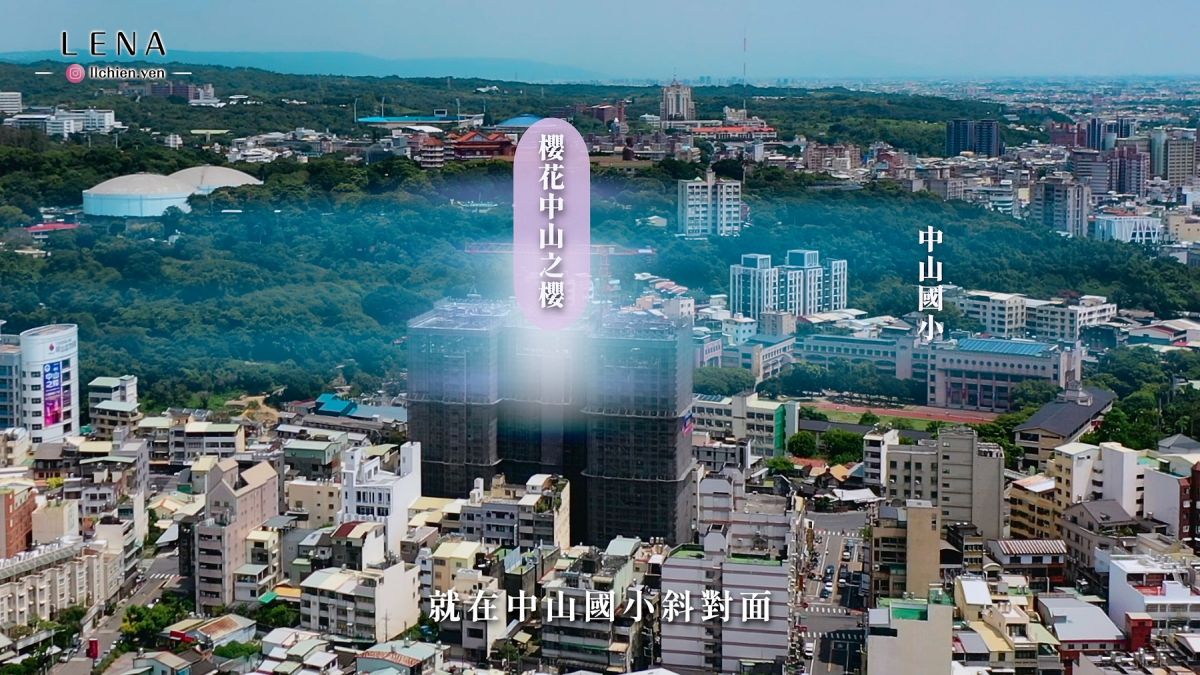 圖/「中山之櫻」基地位置實景空拍。「中山之櫻」近鄰中山國小,附近就是在地人仰賴的三民市場,兼具優質學區與完善生活機能。(YouTube土地婆麗娜 提供)