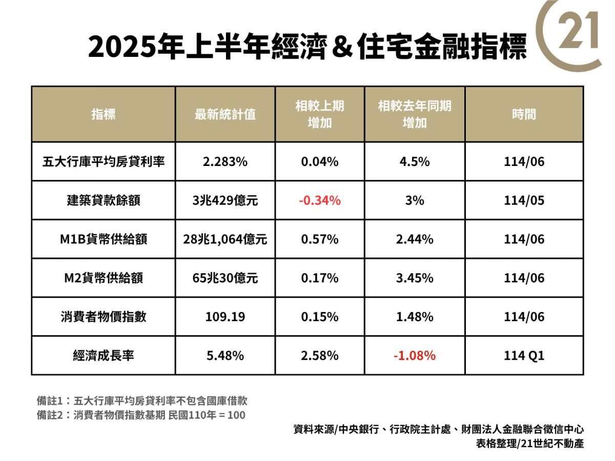 圖/2025年上半年經濟&住宅金融指標。(製表:21世紀不動產)