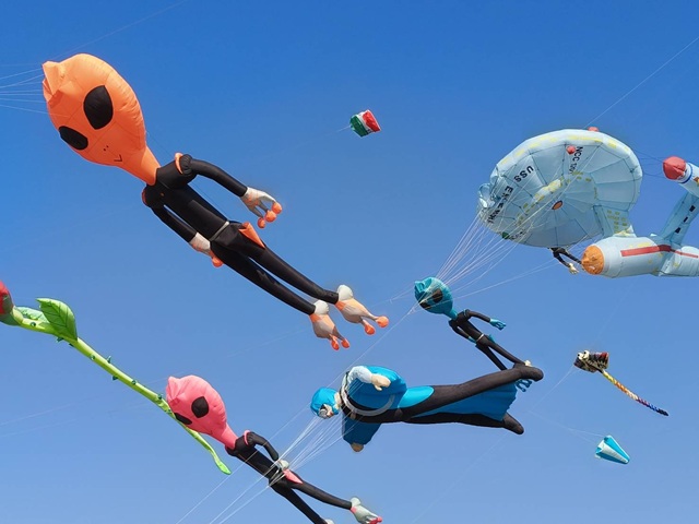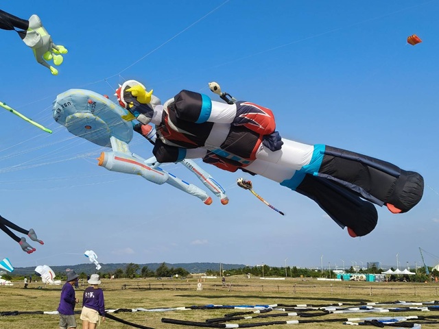 其中,法國隊帶來15米「星際迷航企業號」星艦,義大利隊則以25米「外星人」巨型風箏首次現身新竹,雙方分別領軍「太空聯盟」與「外星軍團」,在天空展開銀河對決,氣勢磅礡。紐西蘭團隊則以大型太空人陣列與「星際賽車」風箏震撼登場,宛如太空艦隊降臨港灣;新加坡團隊則以魚尾獅群風箏增添文化交流色彩,為國際盛典注入新亮點。