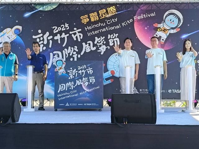 2025新竹市國際風箏節4日在新竹漁港盛大開幕!今年以「箏霸星際」為主題,代理市長邱臣遠偕同國家太空中心主任吳宗信等貴賓共同完成啟動儀式,隨著「太空梭」裝置緩緩啟動,象徵全台最盛大的國際風箏節正式啟航。天空隨即被各式巨型風箏點綴,為中秋連假揭開最夢幻的序幕。