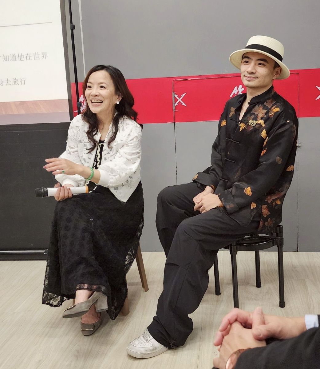 圖/「我與我的冠軍兒子之轉念人生」講座,陳玲寬董事長(左)主講,世界街舞冠軍哈利(田晉瑜)驚喜現身。記者黃信峯翻攝