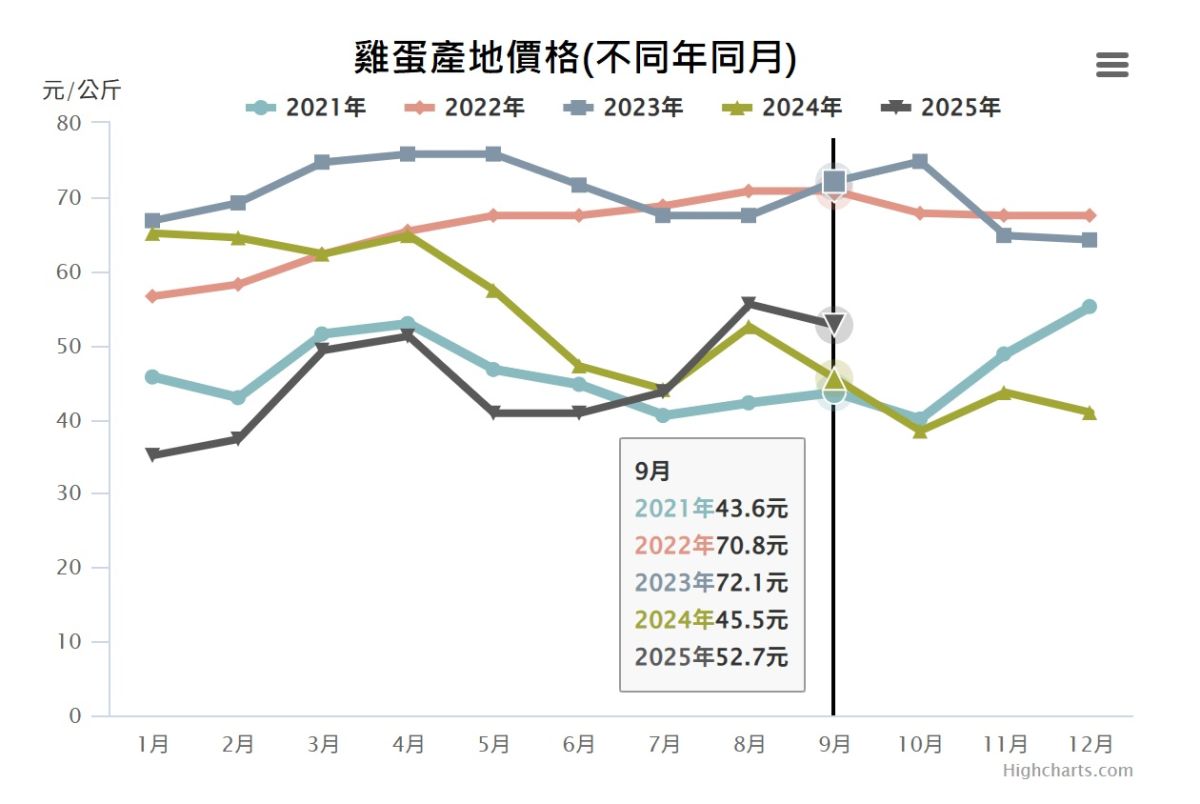 圖/近5年9月份雞蛋產地價格。(翻攝農業統計視覺化查詢網)