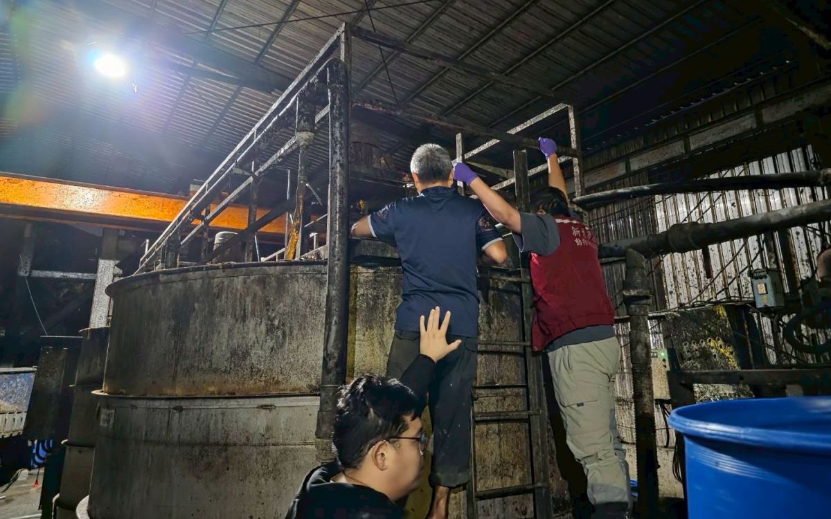 圖/新北市政府聯合稽查小組今(6)日凌晨主動前往林口區一處養豬場進行稽查,查獲業者違法餵食未經蒸煮的廚餘。(新北市政府提供)