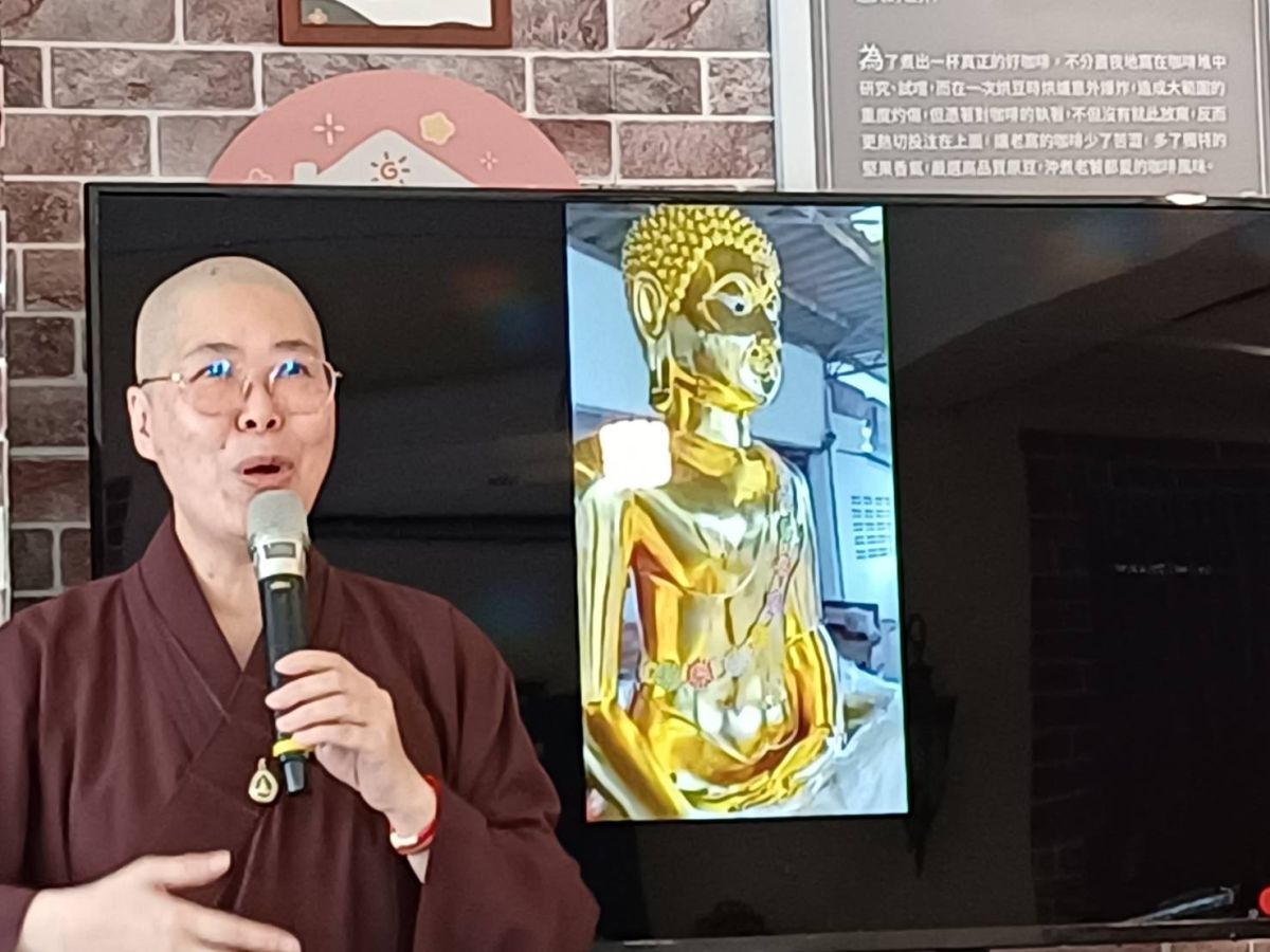 圖/靈鷲山嘉義中心監院寶曜法師說明籌建嘉義講堂過程非常順利。記者黃信峯翻攝