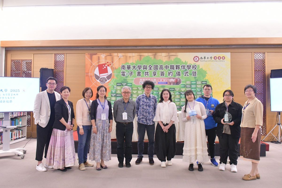 圖/南華大學文學系舉辦第二屆「永懷星雲大師─生命書寫文學獎」決審會議暨頒獎典禮,大專組得獎者與評審合影。記者黃信峯翻攝