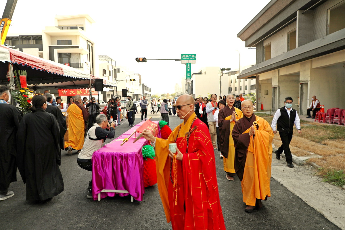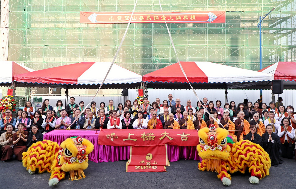 (記者黃信峯/嘉義報導)靈鷲山嘉義新講堂今(19)日舉行上樑大典,在祥獅獻瑞、法師灑淨與慈悲稱頌中莊嚴展開,嘉義市長黃敏惠、陳姿妏議長、民政處長林家緯、立委林倩綺與傅大偉、陳家平、黃敏修等議員以及靈鷲山護法會秘書長寶月法師、多位常住法師、副總會長鄭呂碧雪、執行理事張豐聯、靈鷲山嘉義區榮譽董事聯誼會顧問何經、全一水電負責人熊千綺等多位企業主,到場祝福嘉義講堂法音遍傳、廣利群生。