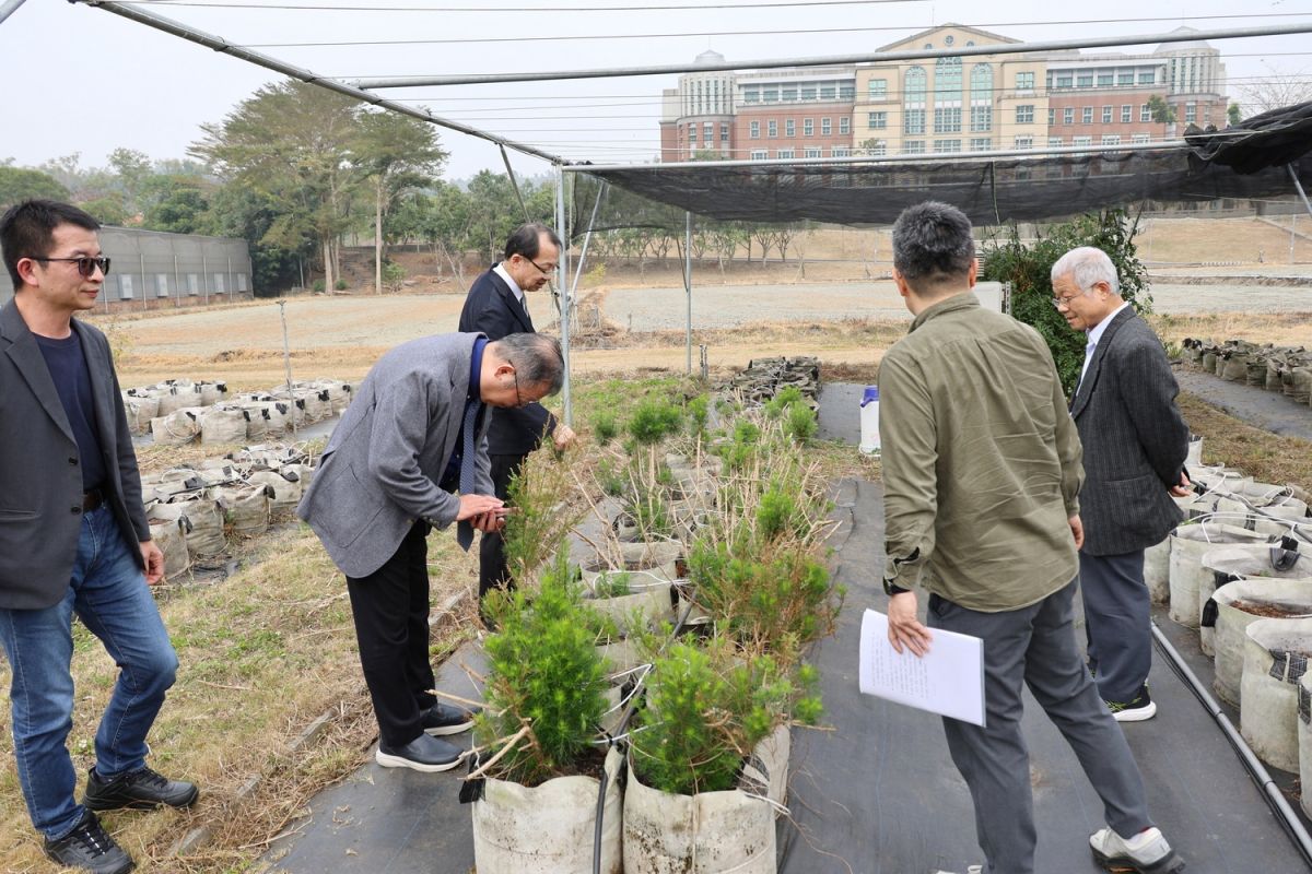 圖/陽明交通大學醫學院團隊參觀嘉義大學台灣原生藥用植物「茵蔯蒿」。記者黃信峯翻攝