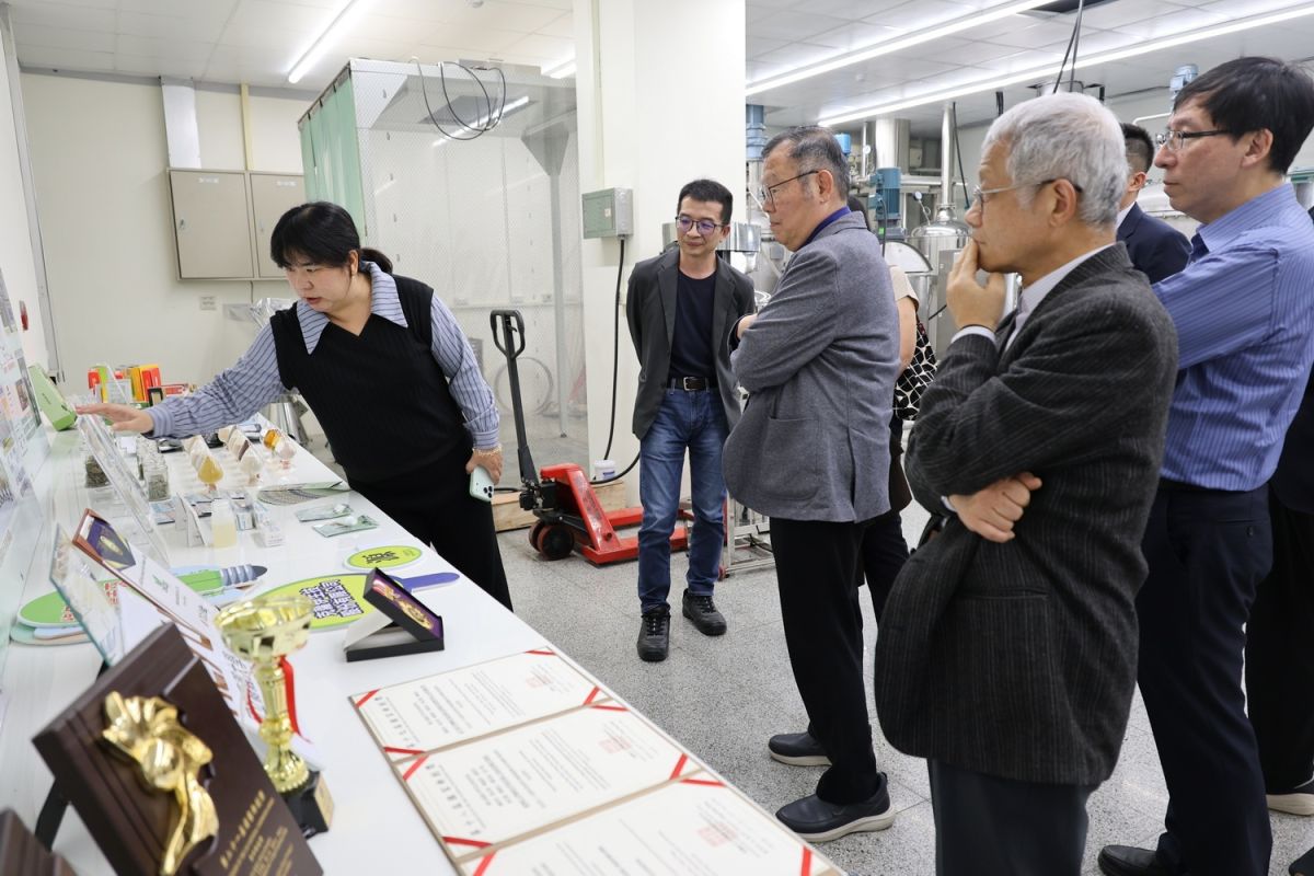 圖/陽明交通大學醫學院團隊參觀嘉義大學中草藥萃取工廠。記者黃信峯翻攝