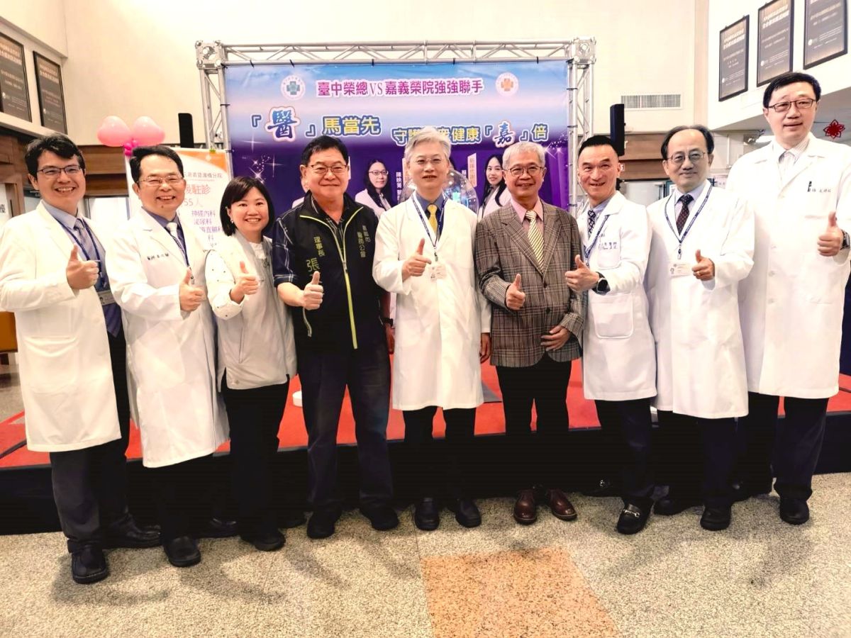 圖/中榮總院長傅雲慶、嘉義分院陳正榮院長、嘉義市政府衛生局長廖育瑋等和出席貴賓合影。記者黃信峯翻攝