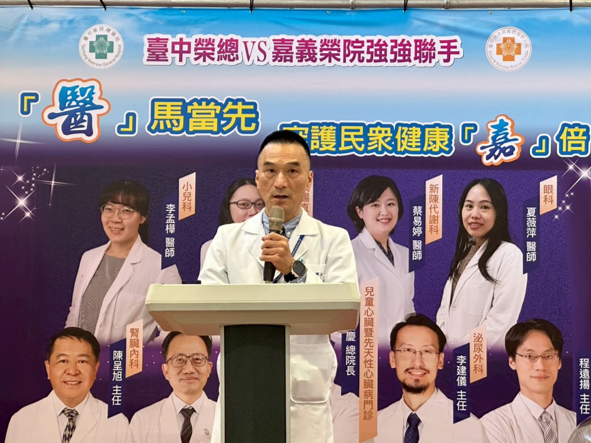 臺中榮總嘉義分院院長陳正榮提到,首先要特別感謝總院總院長傅雲慶及團隊的支持與指導;而總院在了解嘉義地區老年人口已達超高齡社會及該地區醫療需求,自115年3月為止,計有24科55位醫師支援駐診。陳院長提到嘉義地區小兒心導管醫療顯較不足、腦中風治療團隊需求增加、新陳代謝人口的增加等,原來總院即有骨科專科醫師、神經外科專科醫師、眼科專科醫師、腎臟專科醫師駐診,自115年3月起,再增加特聘臺中榮總小兒心臟專科醫師、神經內科專科醫師、直腸外科專科醫師、新陳代謝科專科醫師、泌尿科專科醫師、復健科專科醫師駐診嘉義分院,提供相關醫療支援及協助。