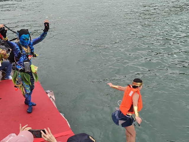 還有來台10年熱愛台灣的烏克蘭女孩華樂蒂也首次參與淨港,她表示烏克蘭也有跳水祈福活動,這次是她在台灣第一次參與神明淨港,直呼太有趣了。淨港勇士有人化身最夯的「阿凡達」、還有「神力女超人」、「繽紛彩虹馬」等創意造型,並現場高喊「馬上發財」、「馬上成功」等祝福語,為莊嚴儀式增添熱鬧喜氣。