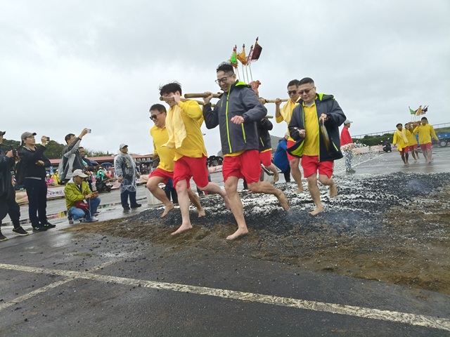 活動由「淨海巡洋」揭開序幕,十二艘漁船載著神尊繞行港灣,象徵巡視海域、庇佑漁民;隨後重頭戲「神明淨港」震撼登場,壯丁抬轎躍入海中洗淨穢煞。緊接著「神明過火」儀式,勇士赤腳踏過炭火,完整展現全台獨有「水裡來、火裡去」的祈福科儀,寓意消災解厄、迎福納吉。