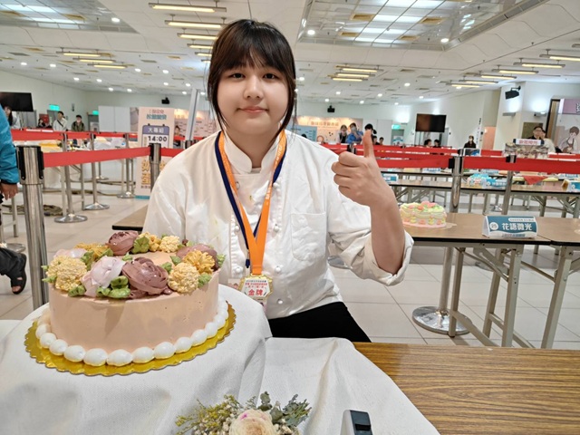 此外,翻糖動態也是臥虎藏龍。去年冠軍選手蘇映帆,今年以維妙維肖的舞獅「慶」,繼續蟬聯冠軍。去年翻糖靜態冠軍、來自高雄從事設計業的呂麗芬,今年挑戰動態翻糖,她以抱著明珠的女孩與山神獸,詮釋「世界正在等你亮起來」。麗芬想鼓勵大家,只要有信心,每個人都可以成為那道光,不必尋找外在光源,也獲得銅牌殊榮。奶油蛋糕社會組則由第一次參賽的 郭懿瑩以「辦桌」作品奪冠,高中(職)組冠軍為樹德家商餐飲科 林昀璇,作品名稱「新生」。