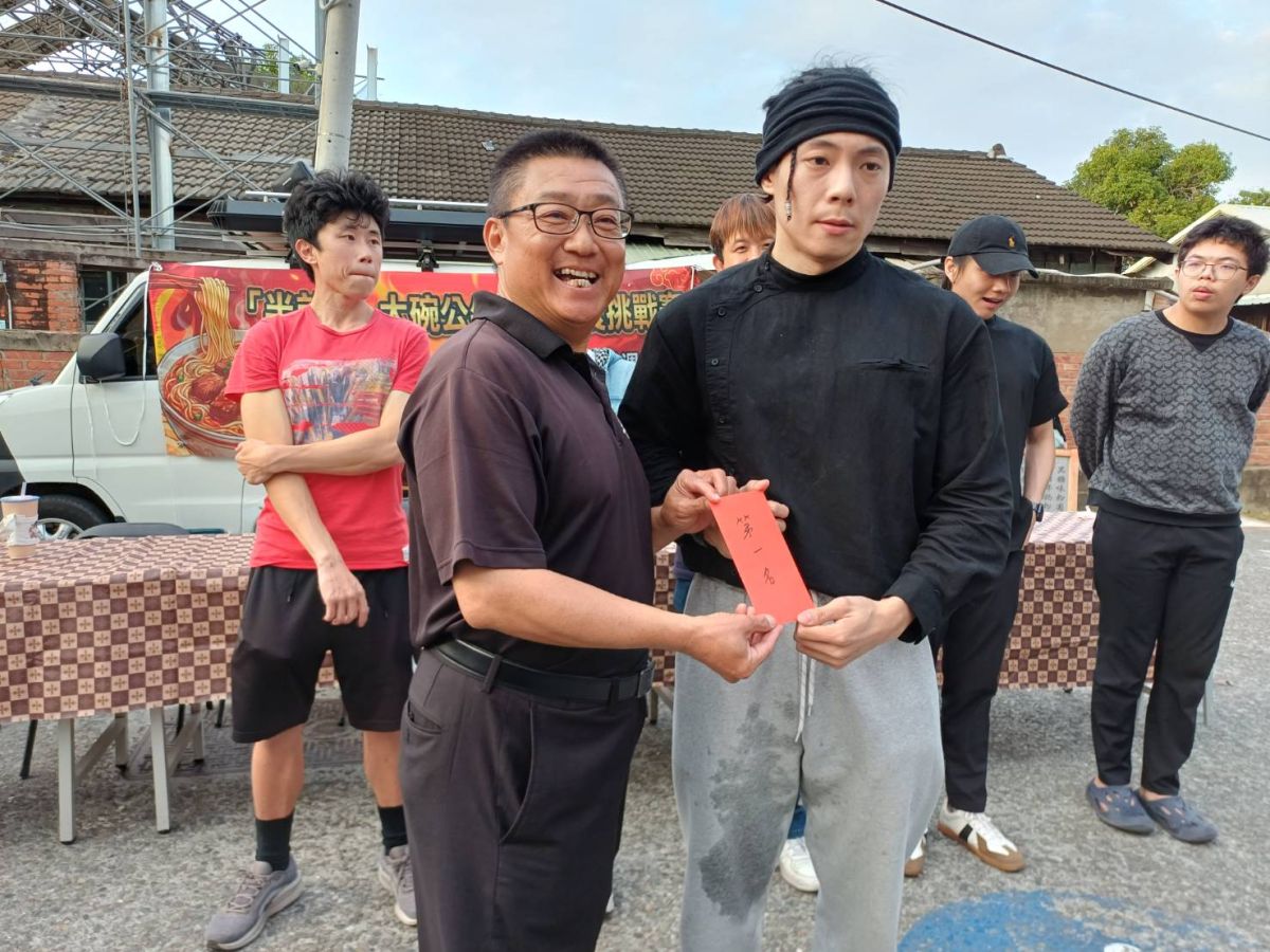 (記者黃信峯/嘉義報導)嘉義市「半畝田」大碗公牛肉麵速食挑戰賽,今(31)日在嘉義舊監獄聚落宿舍群盛大舉行,活動吸引來自各地30位挑戰者報名參賽,場面熱鬧,氣氛高漲。經過三梯次進行預賽,冠軍總決賽名次出爐,奪得第一名劉承鈺、第二名路明哲、第三名林理宏,獲得嘉義諸羅街區科技發展協會理事長劉慶宗也是「半畝田」北方麵食館董事長頒發獎金,第四名至第六名頒贈獎品鼓勵。