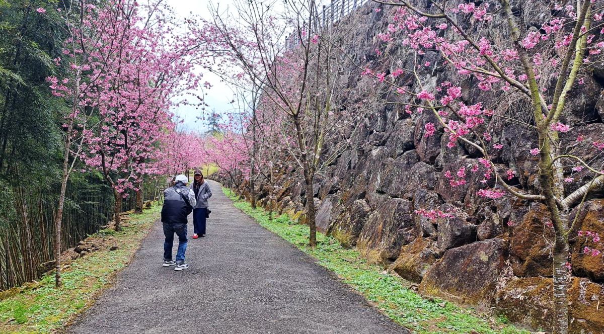 (記者黃信峯/嘉義報導)嘉義縣梅山鄉太和村「寒溪呢森林人文叡地」,素有「世外桃源」之稱,園區創辦人施力文老師規畫園區內的祈願石、八卦陣、虹橋、太極亭、1166盟山祈福亭等特殊景觀都有特殊的涵義,因此吸引眾多愛好大自然遊客紛紛上山觀賞。值得一提的是,園區內除了獨有的台灣特有種「福爾摩沙白櫻花」及緋寒櫻繽紛盛開,另還有八重櫻、富士櫻、霧社白櫻、吉野櫻及絕美的紅笠櫻花,從春節期間開始依序綻放到三月底,成為聖塔山群峰前的櫻花世界,讓遊客在此壯麗又充滿活力的大自然環境中,是一處絕佳的景點。