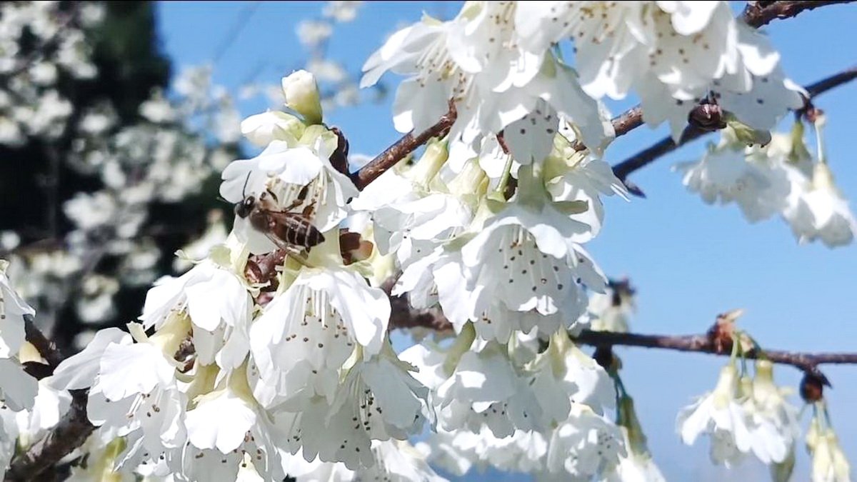 圖/嘉義縣梅山鄉「寒溪呢森林人文叡地」,福爾摩沙白櫻盛開。記者黃信峯翻攝