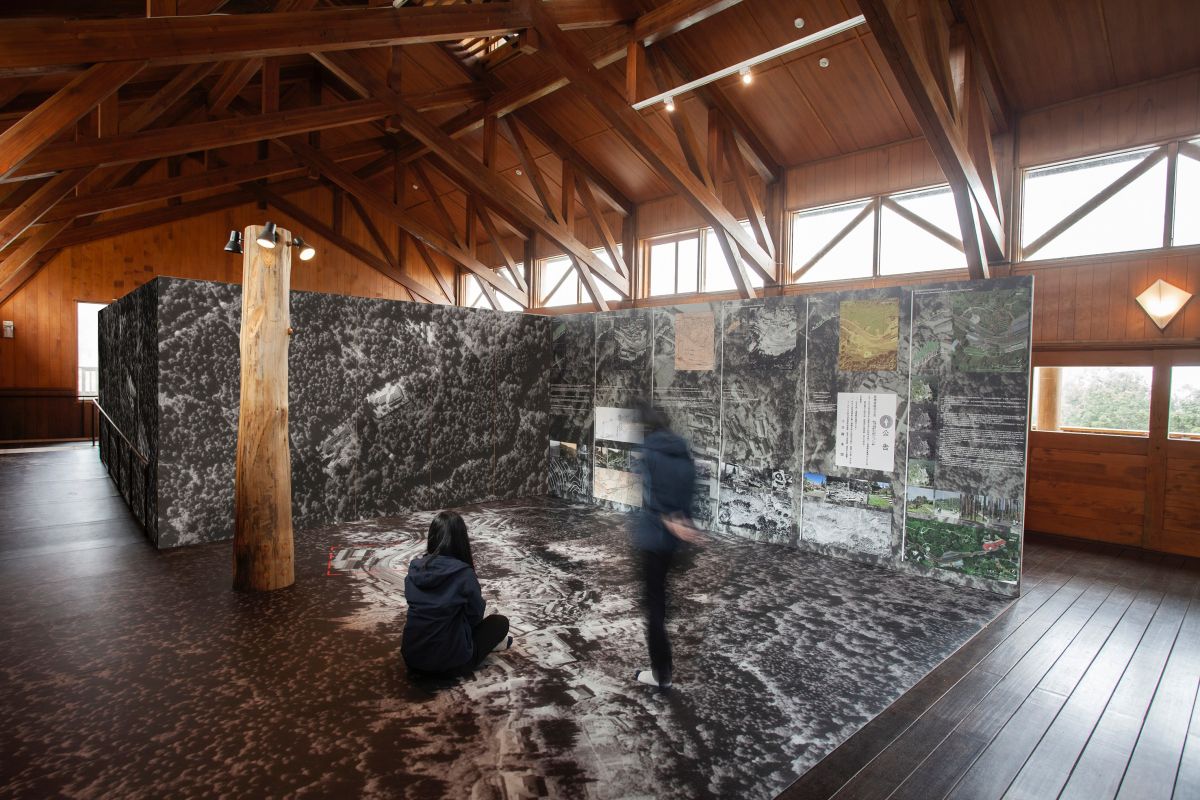 圖/沼平車站二樓《從森林到森林》室內展區展出阿里山空照圖、老照片與口述記憶,讓民眾一覽阿里山林業興盛時的聚落樣貌。林業保育署嘉義分署提供